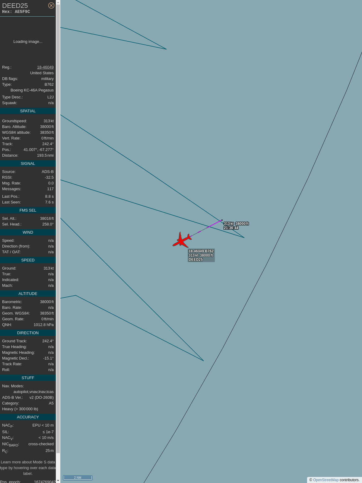#PlaneAlert ICAO: #AE5F9C Tail: #1846049 Flt: #DEED25