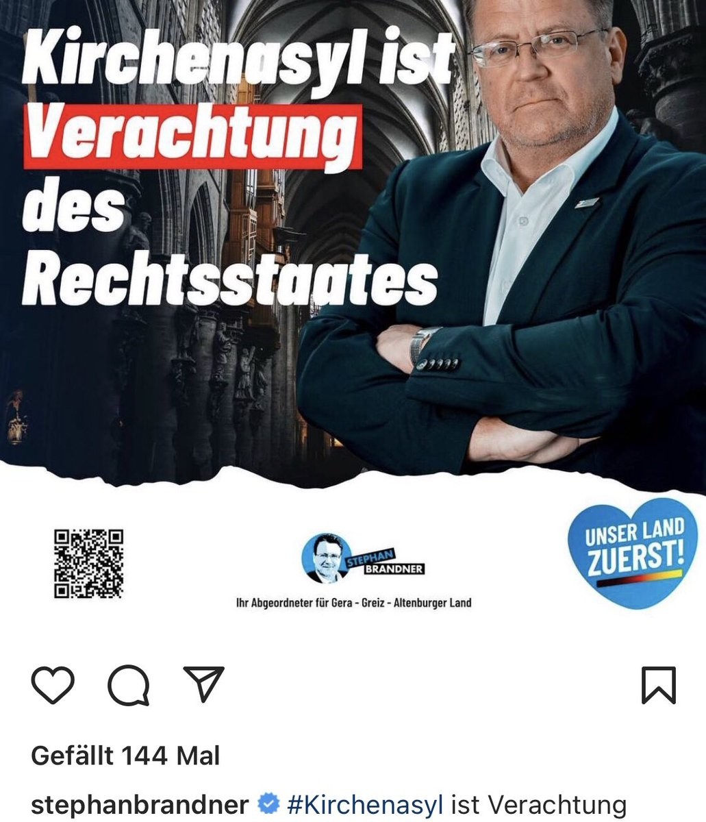das veranschaulicht,dass es der #AfD10Jahre nie um kulturerhalt od schutz des christl. abendlands ging,denn kirchenasyl gehört zu den ältesten u konsistentesten institutionen des abendlandes seit der griech./röm. antike. geht halt doch immer nur um eigene faschistoide weltsicht