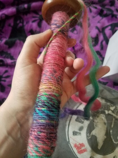 #shabbatShalom y'all. I'm on my way to shul with a friend. I'm very tired. I haven't done a lot of work on my #crochet project today, so please enjoy this extremely colorful #handspun yarn that I did a while ago ...