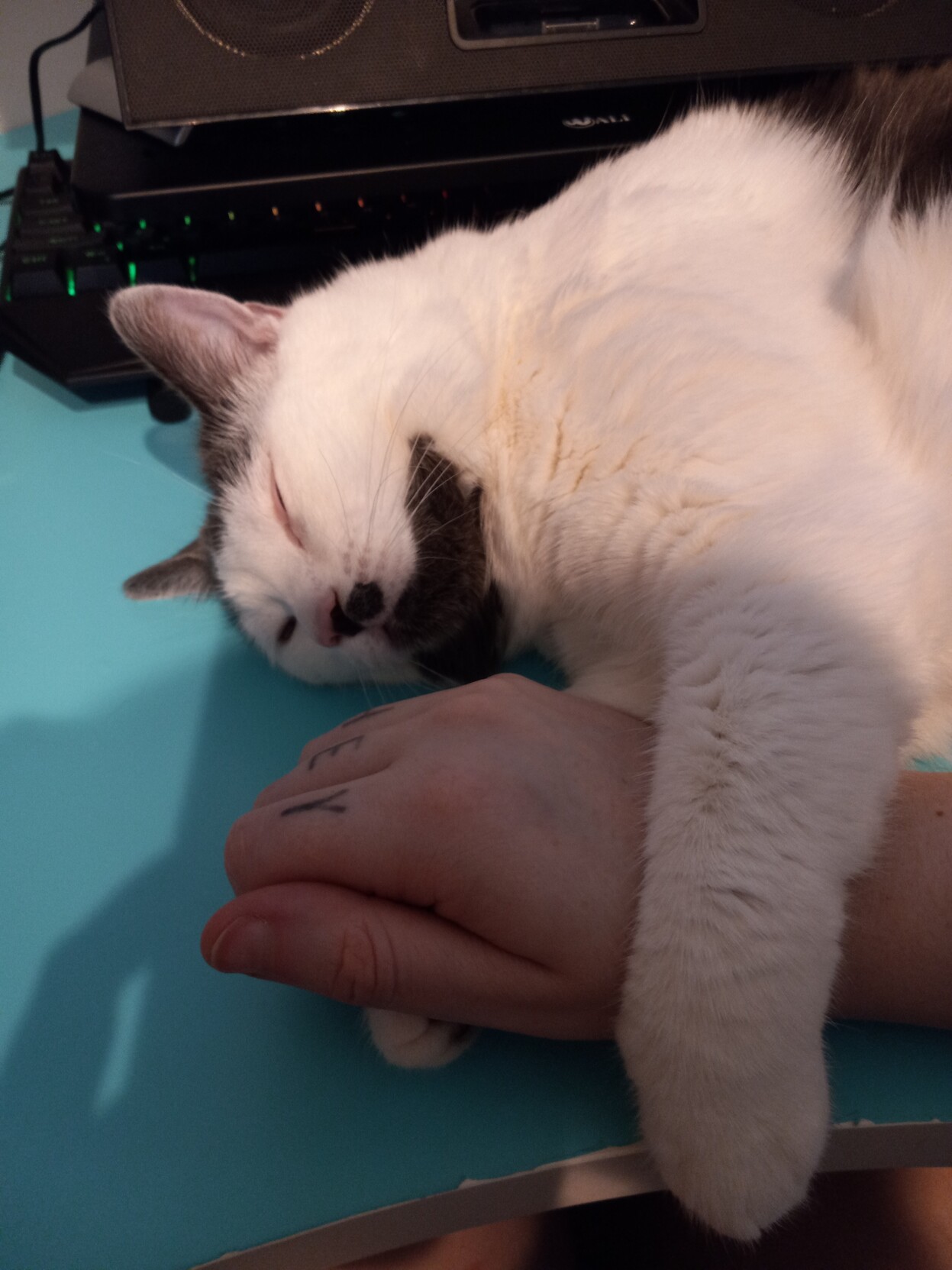 anyway, that's my day. currently sitting at my work desk with one cat on my desk and another under it π€£