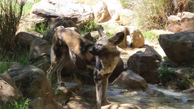 #AfricanWildDog (absolutely love them β€οΈ) at the L.A. Zoo. These very social animals are one of the very few mammals that will care for the sick, elderly, or disabled in their pack. Wish the lighting was better here. I lightened it a little to give a better view of that coat & face.