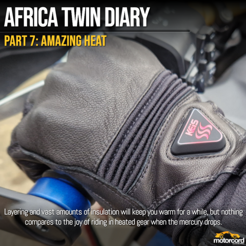 Layering and vast amounts of insulation will keep you warm for a while, but nothing compares to the joy of riding in heated gear when the mercury drops: https://www.motorcord.co.uk/africa-twin-diary-part-7-amazing-heat/