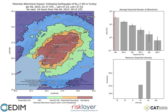 Very high probabilities for damaging aftershock ground motion over a large area including #Malatya, #Gaziantep, #Iskenderun and #Hatay
