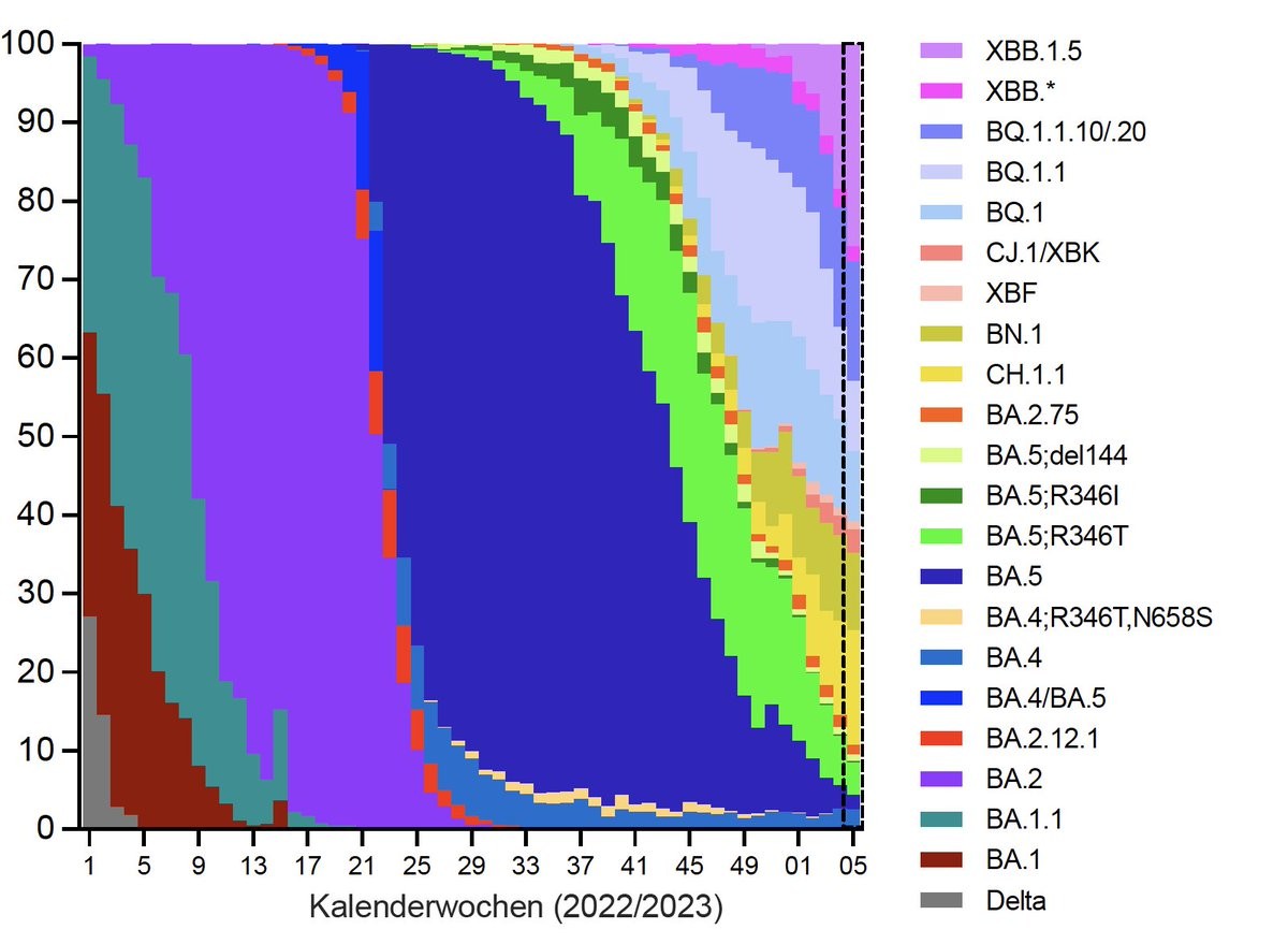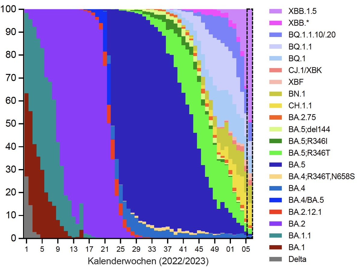 🇦🇹 Representative genomic surveillance of SARS-CoV-2 in Austria week 5, 2023 across all regions. Current analysis includes samples until January 26th allowing faithful nowcasting. A collaboration of #AGES @agesnews and @IMBA_Vienna/@oeaw.