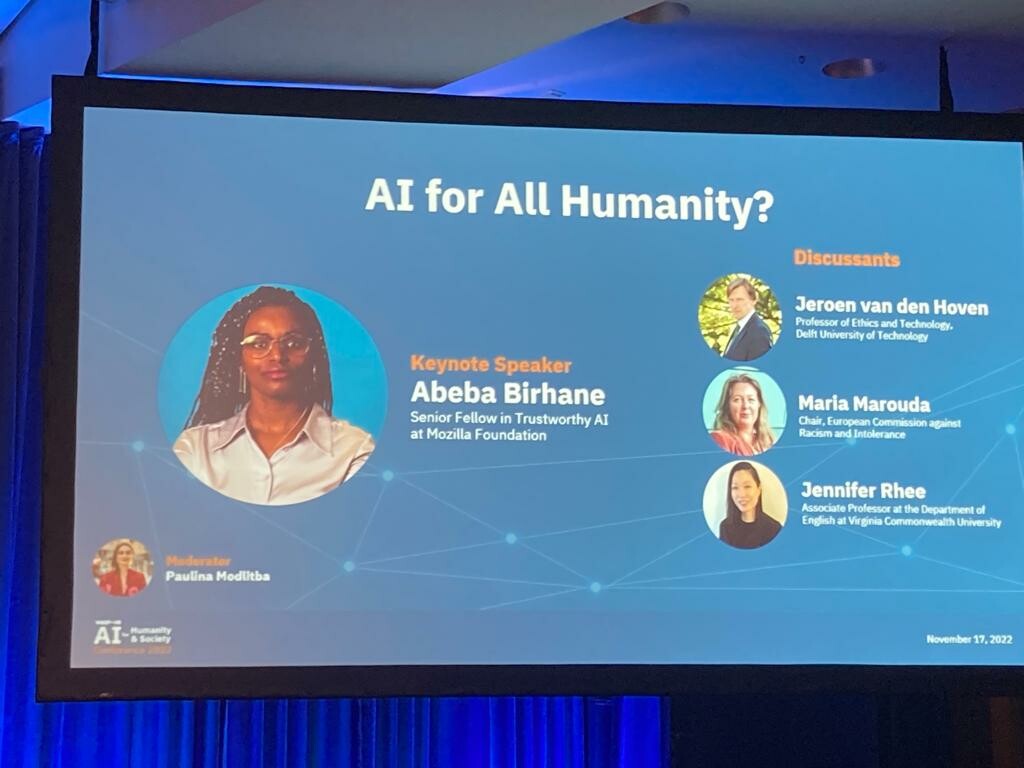 AI for Humanity and Society Conference 2022 #AI4HS2022 listening to @abebab 's keynote. #AI #aiethics