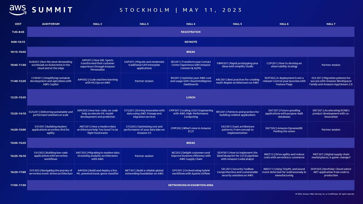 My friends and I have been hard at work creating an exciting agenda of technical sessions for builders! There's still time to register for AWS Summit Stockholm and join these sessions!