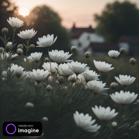 Lyssnar på regn i skymning och ser några vita ljus i trädgården. Vitt är vackrast i skugga eller skymning. Undrar om det är därför som vita blommor blivit förknippade med begravningar - dom lyser upp övergångar? #aipictures