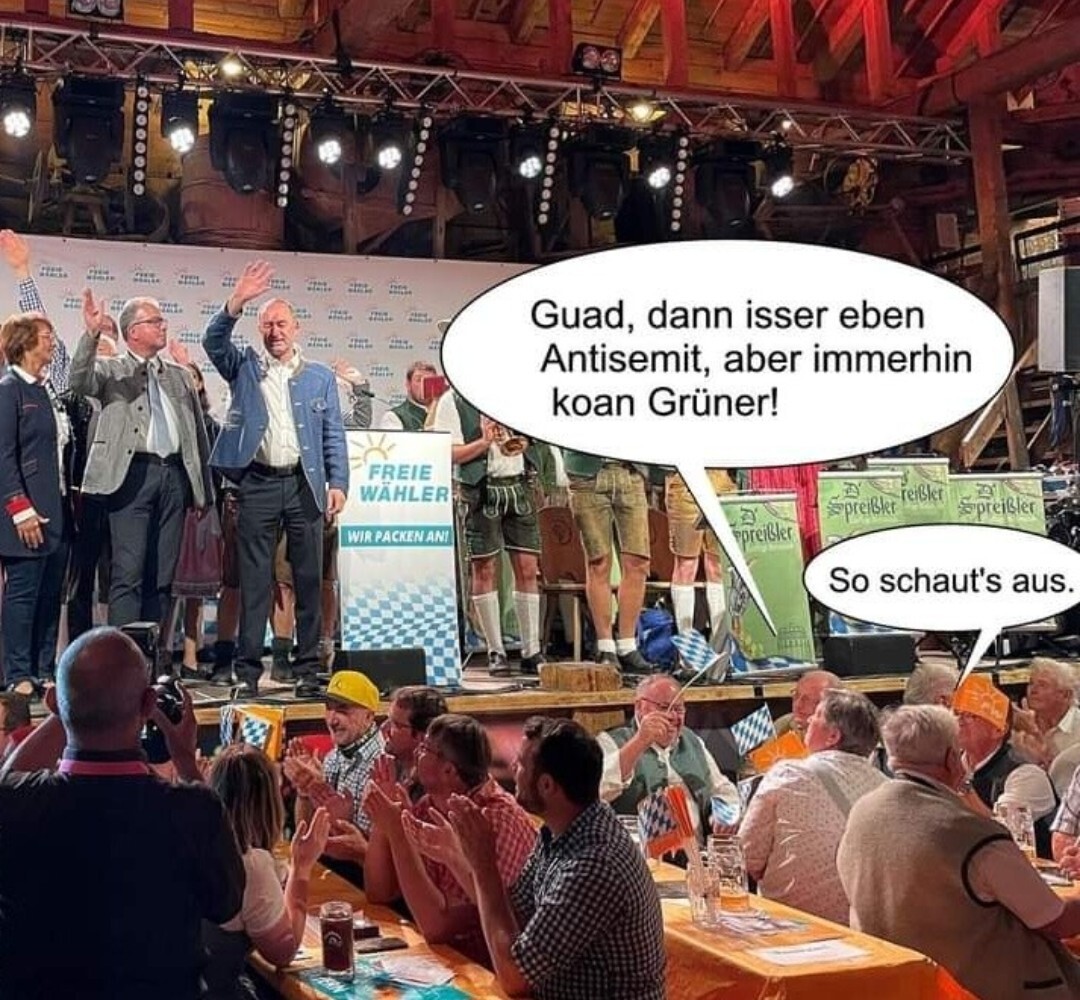 Es ist ein Armutszeugnis für #Bayern dass dieser Mann #Aiwanger nach aufgedeckter Nazi-Vergangenheit und jetzt rechtsradikaler Haltung so viel Anerkennung erfährt, Geschichtsvergessenheit/Nazi-Sumpf/Gaudi first