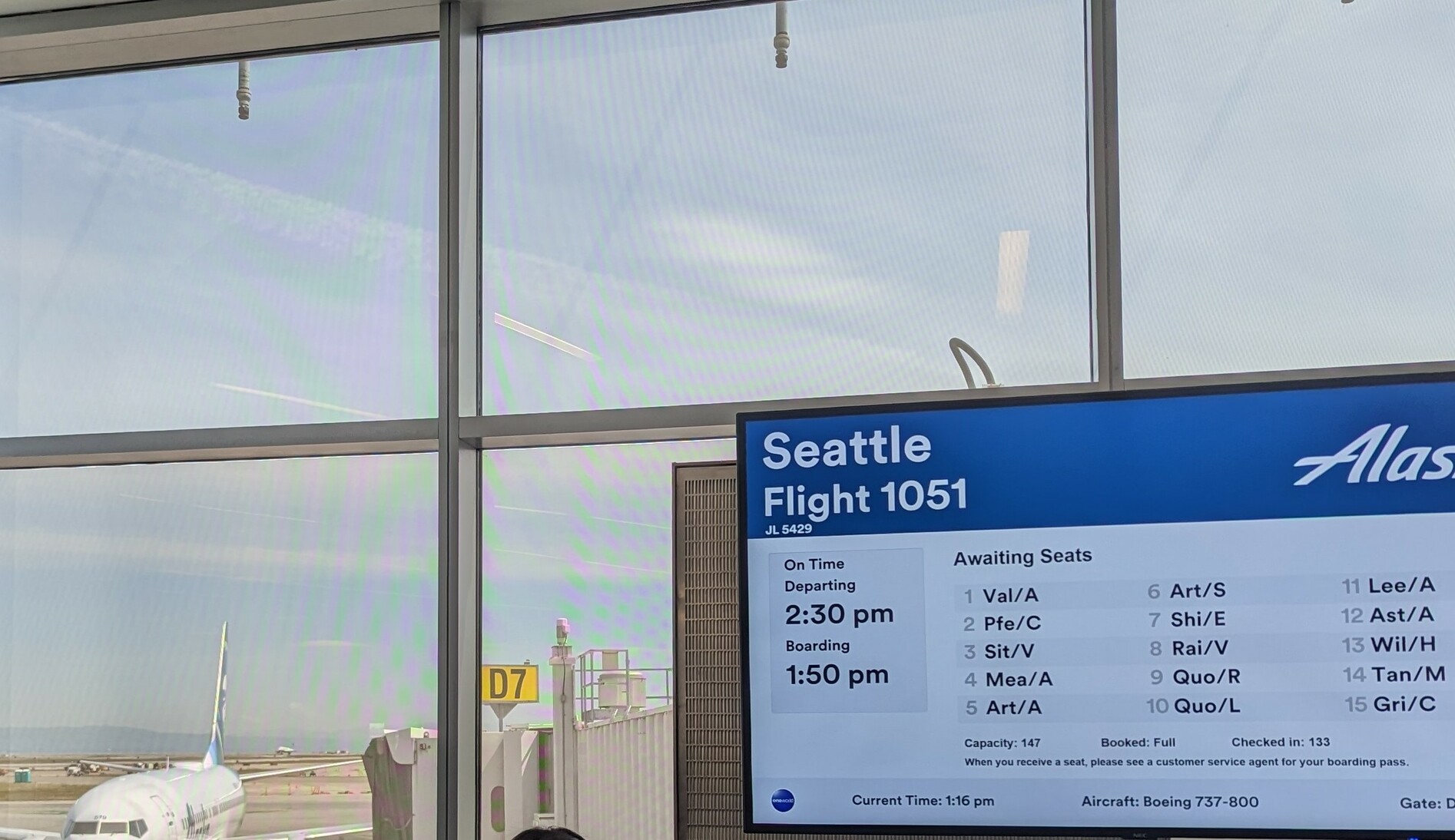 With our #Delta flight delayed by more than an hour, @BeanieCam and I were accommodated on an #AlaskaAir flight instead that’s arriving an hour earlier than our original flight would had were it not running 70 min late.