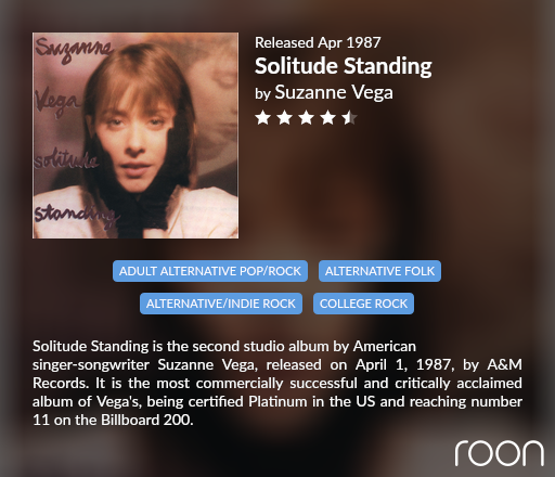 Ascoltai per la prima volta questo album (e Suzanne Vega) nel 1994 quando andai a lavorare a NTNU a Trondheim (Norwegian University of Science and Technology) per alcune settimane. Ho il ricordo di quei luoghi stupendi e di questa musica dolce e romantica.