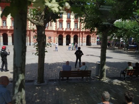 Exitazo del acto de @vox_es@twitter.com en #Eibar 4 payasos bloqueando todo el puto centro del pueblo por el dispositivo de seguridad #AldeHemendik #NoPasarán