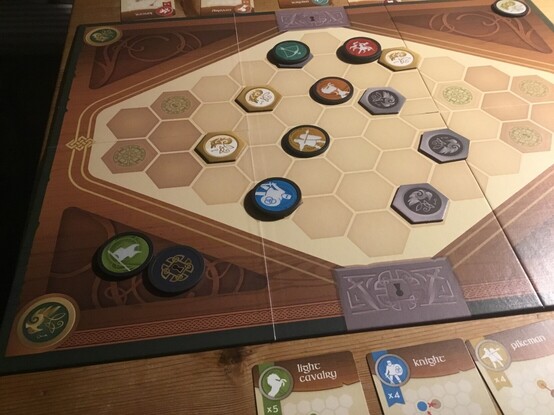 This weekend i played War Chest. A abstract, strategic, asymmetric 2 or 4 player boardgame. You do have to learn the mechanics of the different troops, but this takes 1 or 2 games. It's very straight forward, elegant, players have important choices, ruses and deduction.