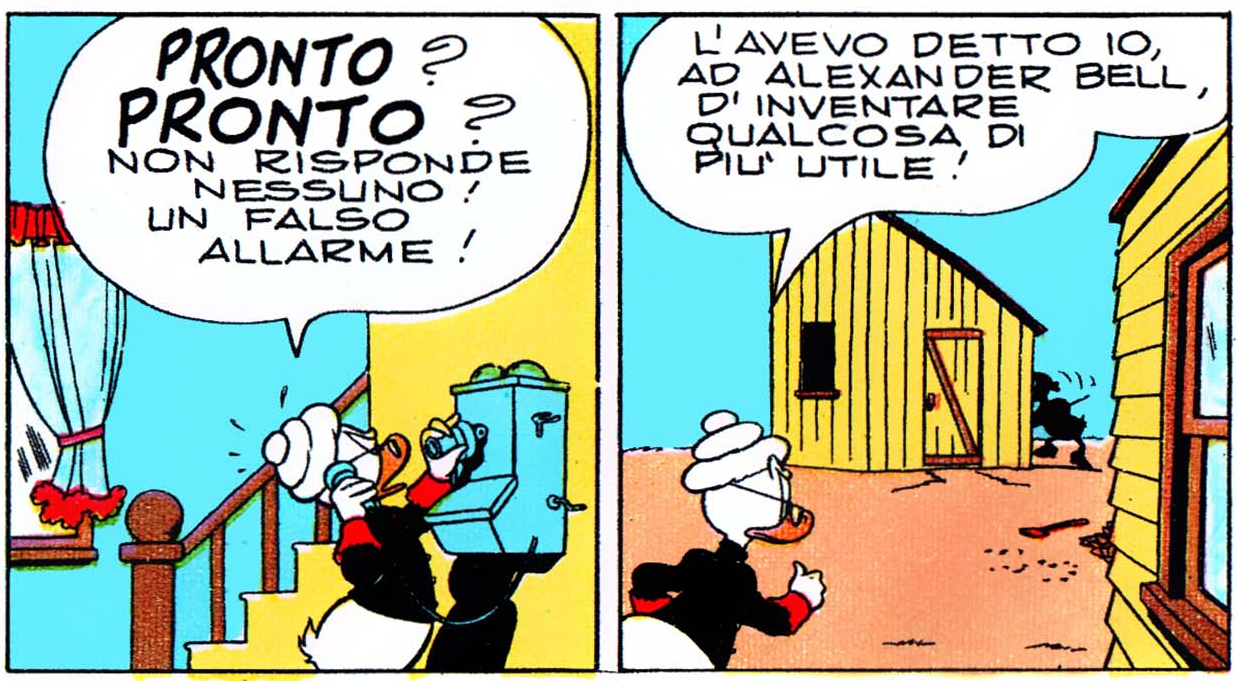 Leggendo #Topolino n. 338 del 20 maggio 1962, mi sono imbattuto in un paio di vignette in cui #nonnapapera afferma di aver parlato del #telefono addirittura con #alexandergrahambell (e con aria piuttosto critica, direi), e mi è tornato in mente che esattamente 40 anni dopo, nel 2002, il Congresso degli Stati Uniti d'America avrebbe attribuito ufficialmente l'invenzione del telefono al nostro #AntonioMeucci.