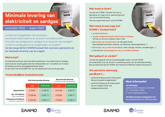 Op deze site vind je de flyer ook in het Frans en Nederlands: https://www.saamo.be/provincie-antwerpen/broodnodige-steun-minimale-levering-aardgas-nu-uitgebreid-en-nu-ook-voor-elektrische-verwarming/
