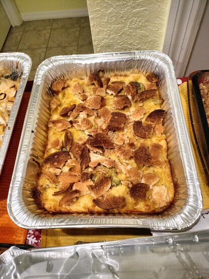 Mac and cheese with gouda, white cheddar, sharp cheddar, and broccoli. Lazy breadcrumbs and apple crumble