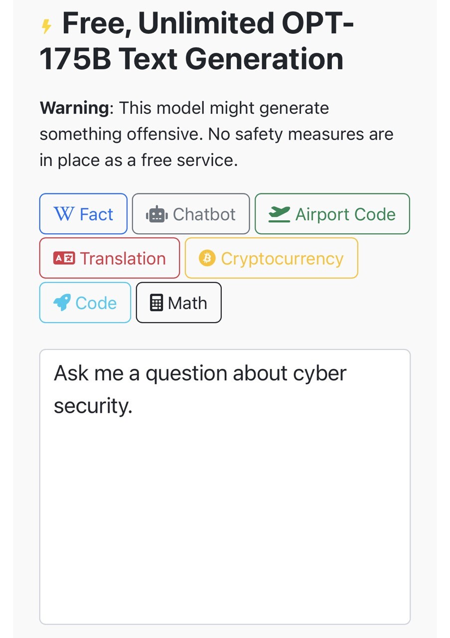 #Alpa is another large language model similar in size to #gpt3. Currently free to use without registration.