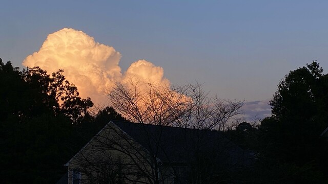 Wow there’s a pretty cumulonimbus cloud catching the alpenglow looking out my front door this evening