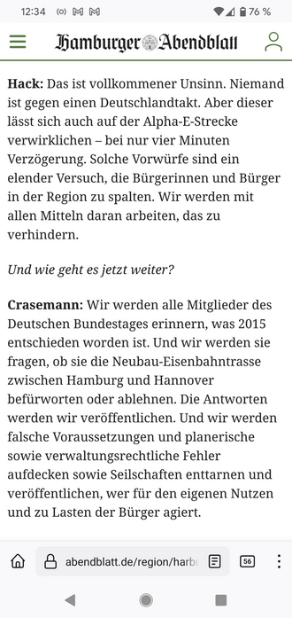 Heute Morgen im Winsener Anzeiger: auch das Land Niedersachsen spricht sich gegen die Neubaustrecke aus und unterstützt die Proteste der Menschen #alphaE #stopytrasse #db