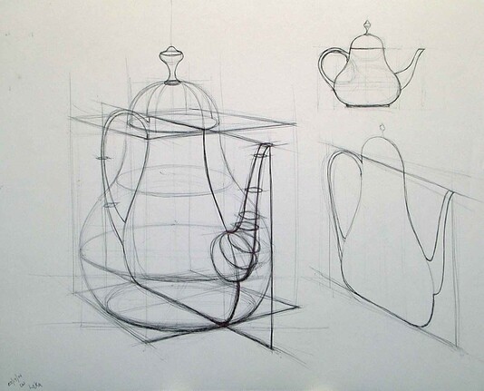 Когда вы рисуете несчастный чайник, игнорируя свет и тень, это называется линейно-конструктивным построением. Вы пытаетесь осознать конструкцию фигуры.