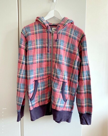 to make it smaller, i first unpicked the hood, zipper, waistband ribbing, pockets, and facing strips. then i cut the waistband into 2, a narrower strip for the neck + a wider strip for the waist. (added ribbing to the neckline cos it was too big after removing the hood) then i sewed the pieces back together.