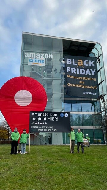 « JETZT🚨Greenpeace-Aktivist:innen protestieren gegen die Konsumschlachten am #BlackFriday bei @amazonDE. Dieses Geschäftsmodell befeuert Naturzerstörung und Klimakrise. #AmazonCrime https://t.co/DcHFHvgNx7 »