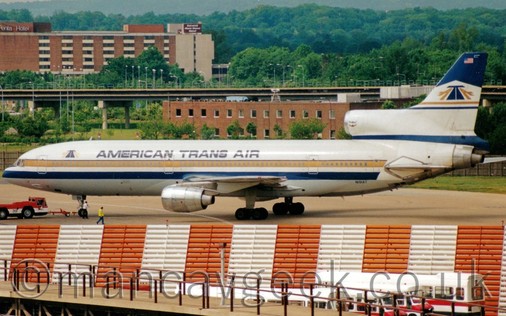 N191AT, Lockheed L1011-50, American Trans Air, at London Gatwick at some time in the 1990s.