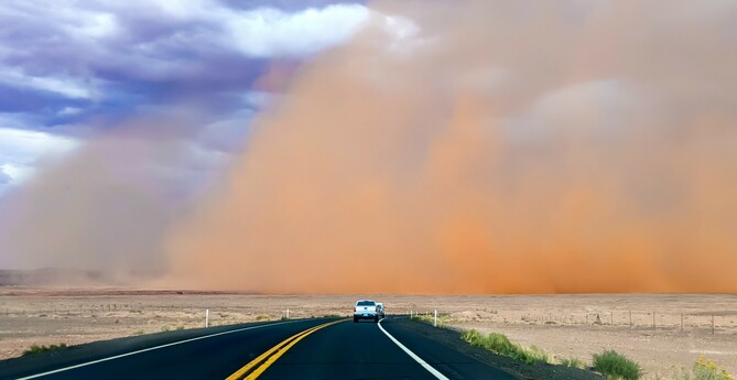 Driving into a haboob in Wupatki National Monument, 2021. It was intense.