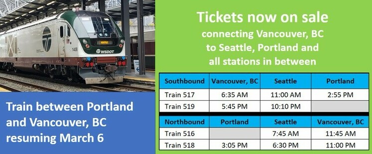 Second #AmtrakCascades trip between #Seattle and #VancouverBC coming on March 7 (with a stop in #BellinghamWA of course)! Very excited! https://www.bellinghamherald.com/news/local/article271155922.html