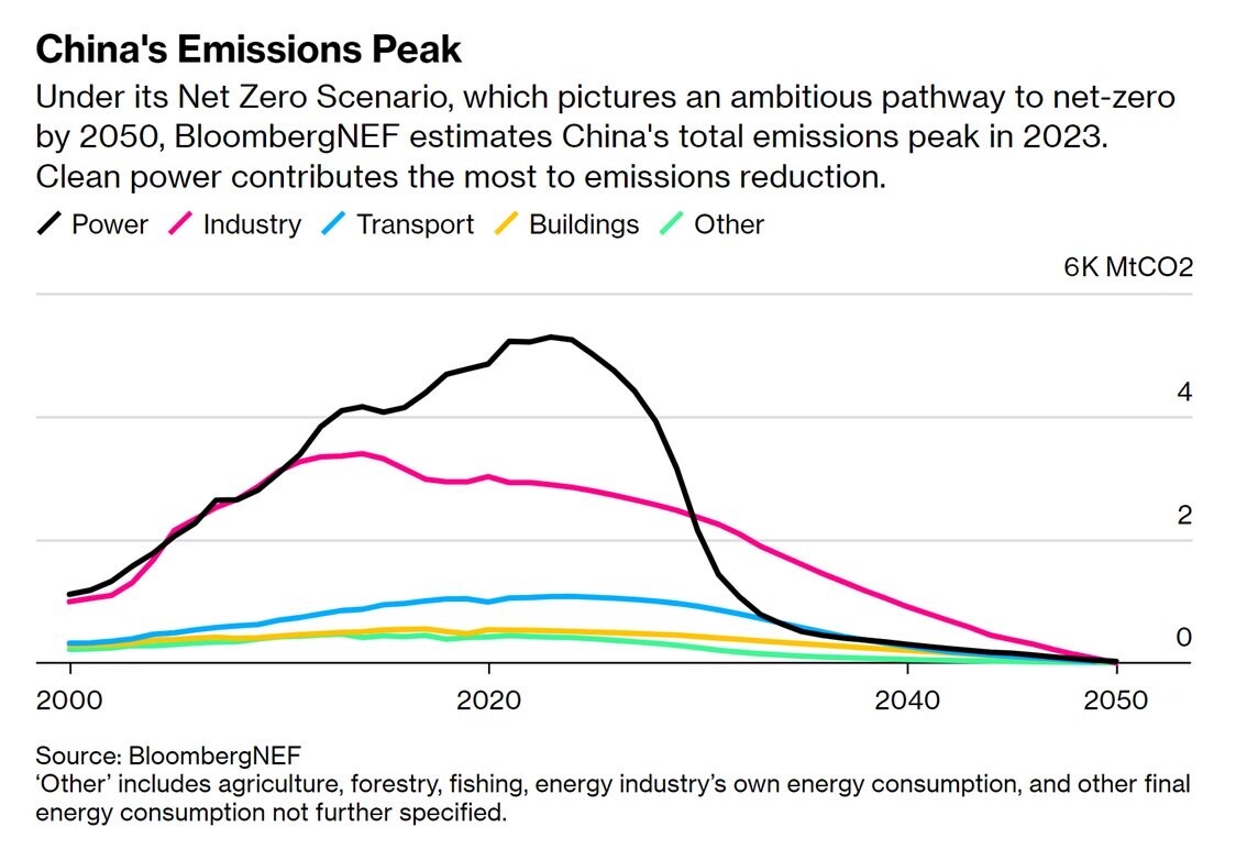 In China sind die Treibhausgasemissionen im Jahr 2024 erstmals gesunken. Die Senkung war ursprünglich erst für 2030 erwartet worden.