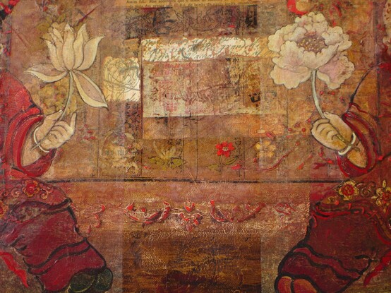 Fotografia: “Papéis no fundo da caixa” – tinta acrílica sobre tela, de Fernanda Dias.