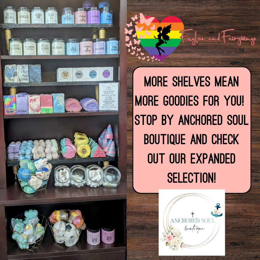 #anchoredsoulboutique #shophandmade #smallbusiness #showersnacks #foxgloveandfairywings