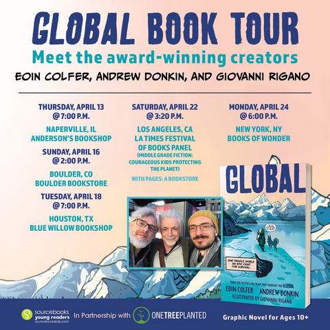 Delighted to say that our new full length, full colour, graphic novel GLOBAL is out later this month. Co-written by myself and Eoin Colfer with fantastic art by Giovanni Rigano. It’s been a labour of love for everyone involved. We can’t wait for you to read it. Out from SourceBooks on April 11th in the USA & Canada. Out from Hodder on 27th April in the UK & Ireland. #GlobalGraphicNovel #comics #graphicnovels #books #climatechange #GlobalWarming #ya #kidsbooks #kidslit #andrewdonkin
