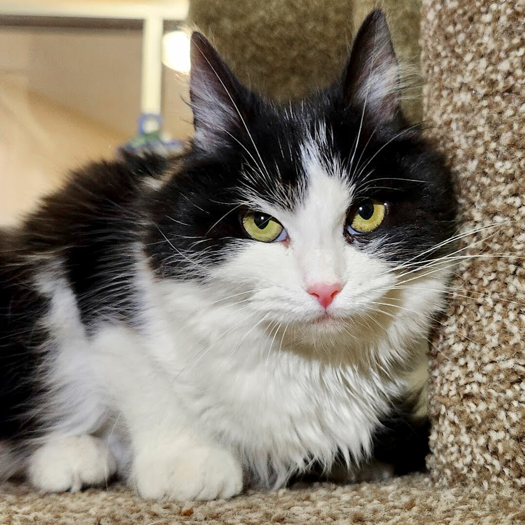 Don't let that grumpy face fool you! Minnie is a sweetheart with a gentle demeanor, luxurious coat, and magnificent purr. If you let her, she'll spend all day napping away on your lap, making precious muffins with her paws. #angy