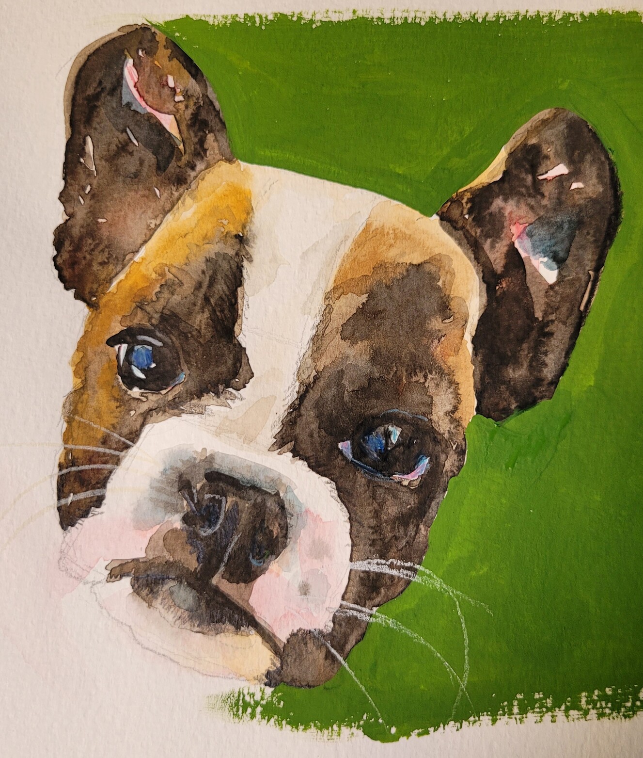 First doggo in the Animal A Day challenge. Mixed media (mostly watercolour and gouache) on paper.