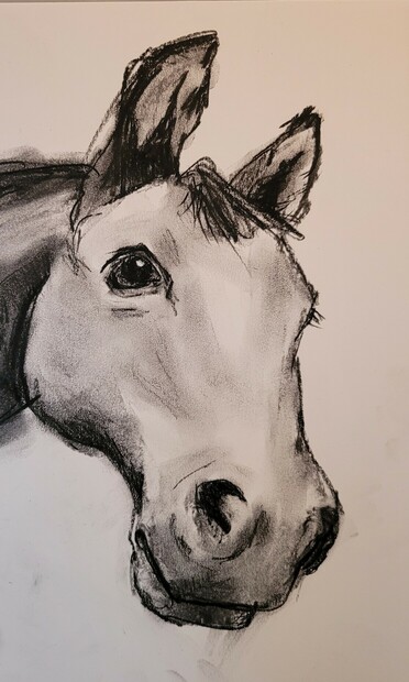 A charcoal horse for the Animal A Day self challenge. This looks a bit cartoony because of the outlines. That's what you get for being lazy about shading.