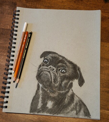 There will be cats and dogs, wildlife, perhaps fish. There will be charcoal, watercolour, pastels, ink, perhaps acrylics if I find the time. Since I veer towards a very literal style, I'm trying to loosen up in the process.