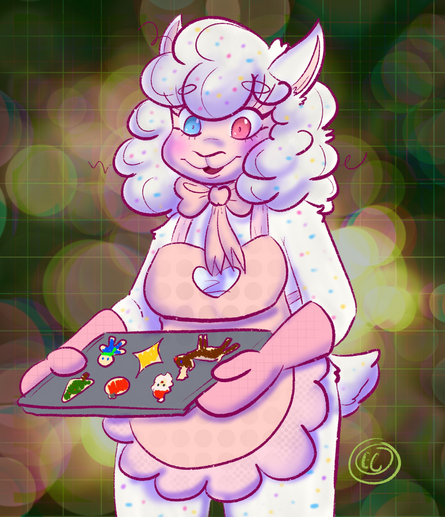 Minky has made cookies #candyvioletocs #myocs #myart #procreate #procreateart #digitalart #artistsofmastodon #alpaca #alpacaoc #anthro #anthrooc