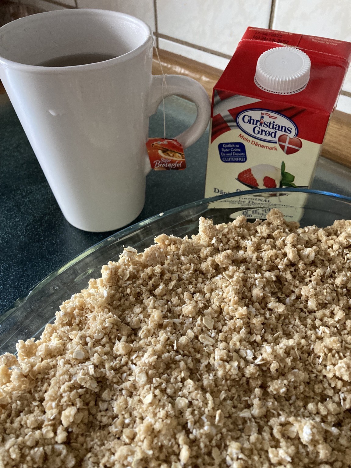 #apples #boskoop #äpfel #oats #flour #butter #cinnamon #maplesyrup #lemonjuice #canesugar #whippedcream