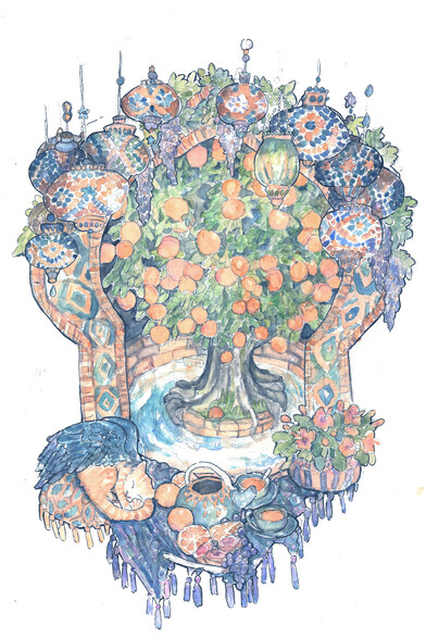 #CreativeToots #fediart #MastoArt #illustration #art #arabesque #orange #ginger #ink #watercolor #tea #CatsOfMastodon #cats #summer