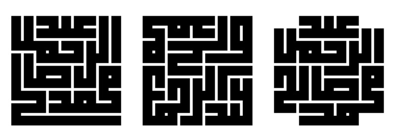 Some sketches for a personal stamp using Square Kufic. Sadly the guy I was planning to order them from does *not* have a small circular stamp. His small stamps are oval, which I didn’t like these designs into.