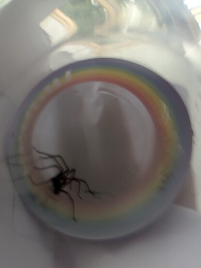 This Chonky Spider scrambled out from under a bathmat this morning, so I scooped it up and dropped it out the window.