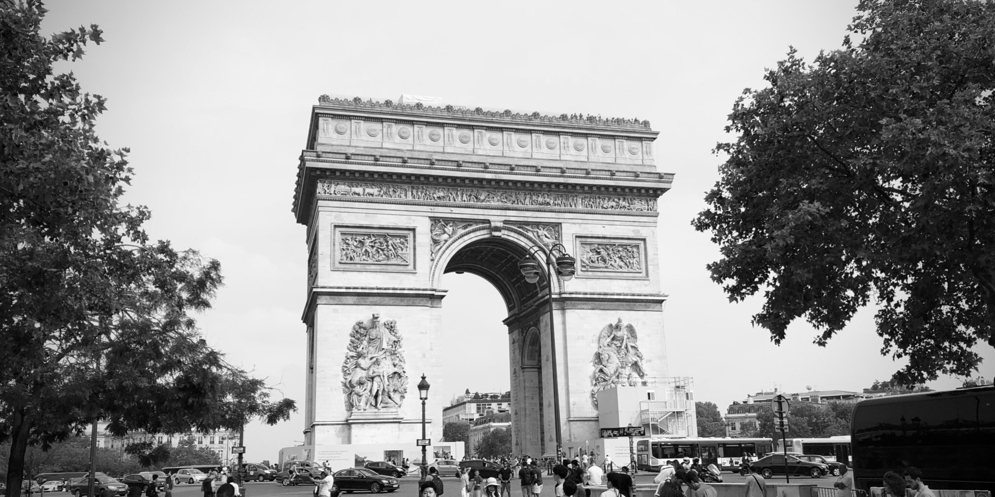 My first glimpse of the Arc de Triomphe was the morning I landed in Paris. The downtown core was hosting a marathon, so busses weren't going there. I eventually found an Uber driver who was willing to brave the crowd and take me to my hotel. We passed right by the Arc, and I stared in awe. Of course, it was on my itinerary for another day, so I went back.