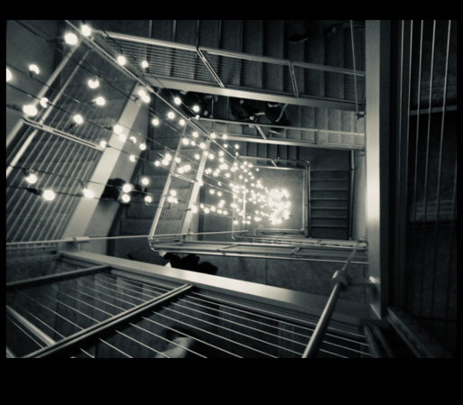 morning of day 16 #ArtAdventCalendar , some streams of lights cascading through the stairwell of the Whitney Museum NYC (#phonephoto, 2015).