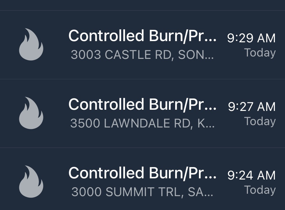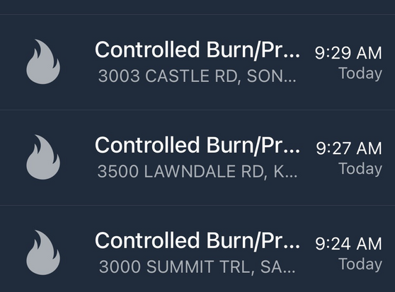 WTF. Guess they didn’t read the part about not burning on windy days. Screenshot from Pulsepoint attached #areyounuts?