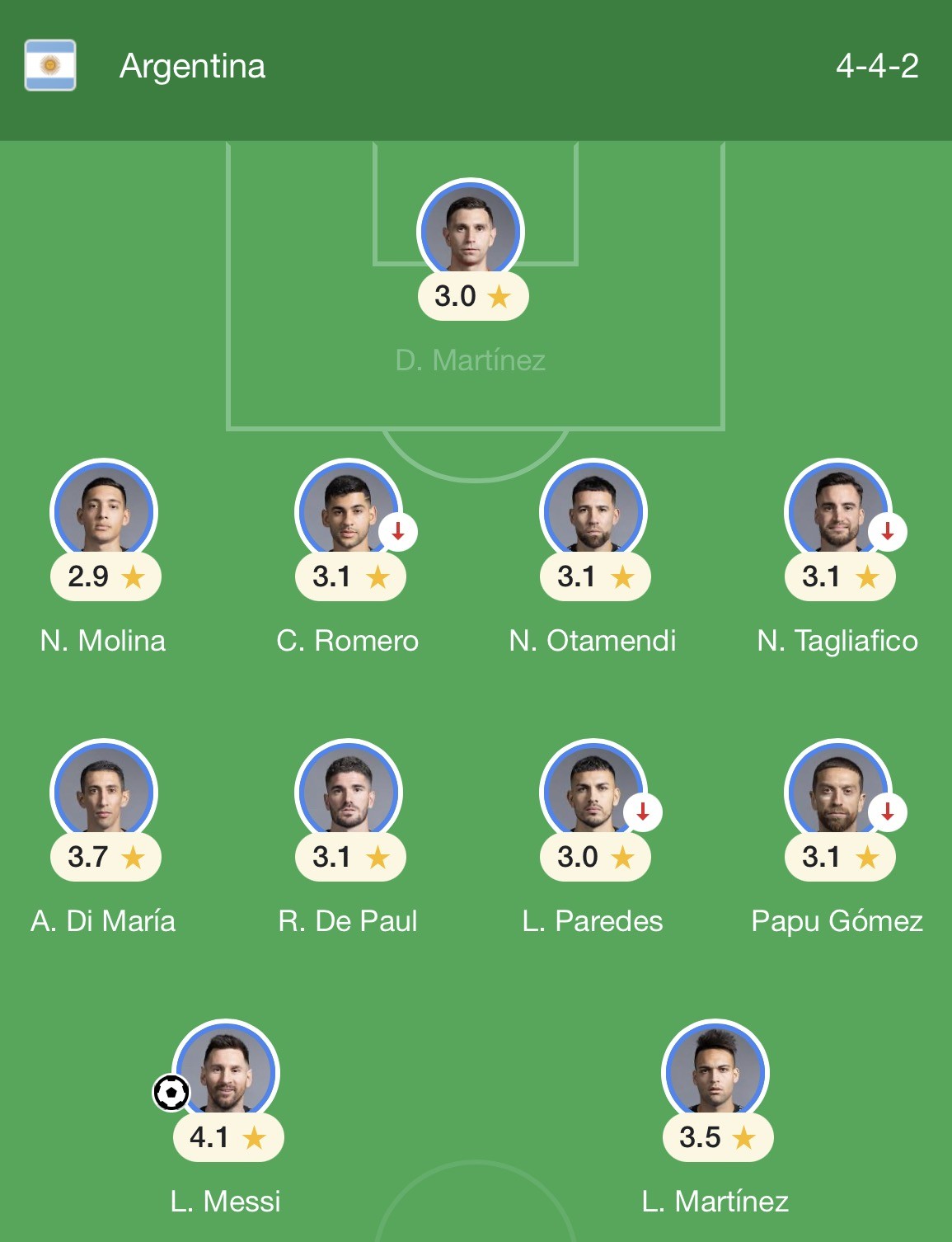 Here are the player ratings after the #ARGKSA #ARGvsKSA #ARGvKSA match, according to Google users. 😂
