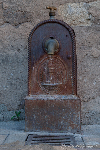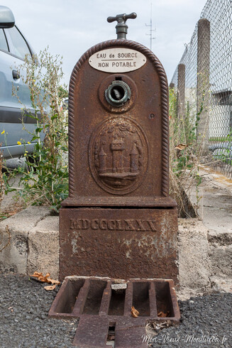 Borne-fontaine quasi complète avec les #armoiries de la ville et datée de 1880