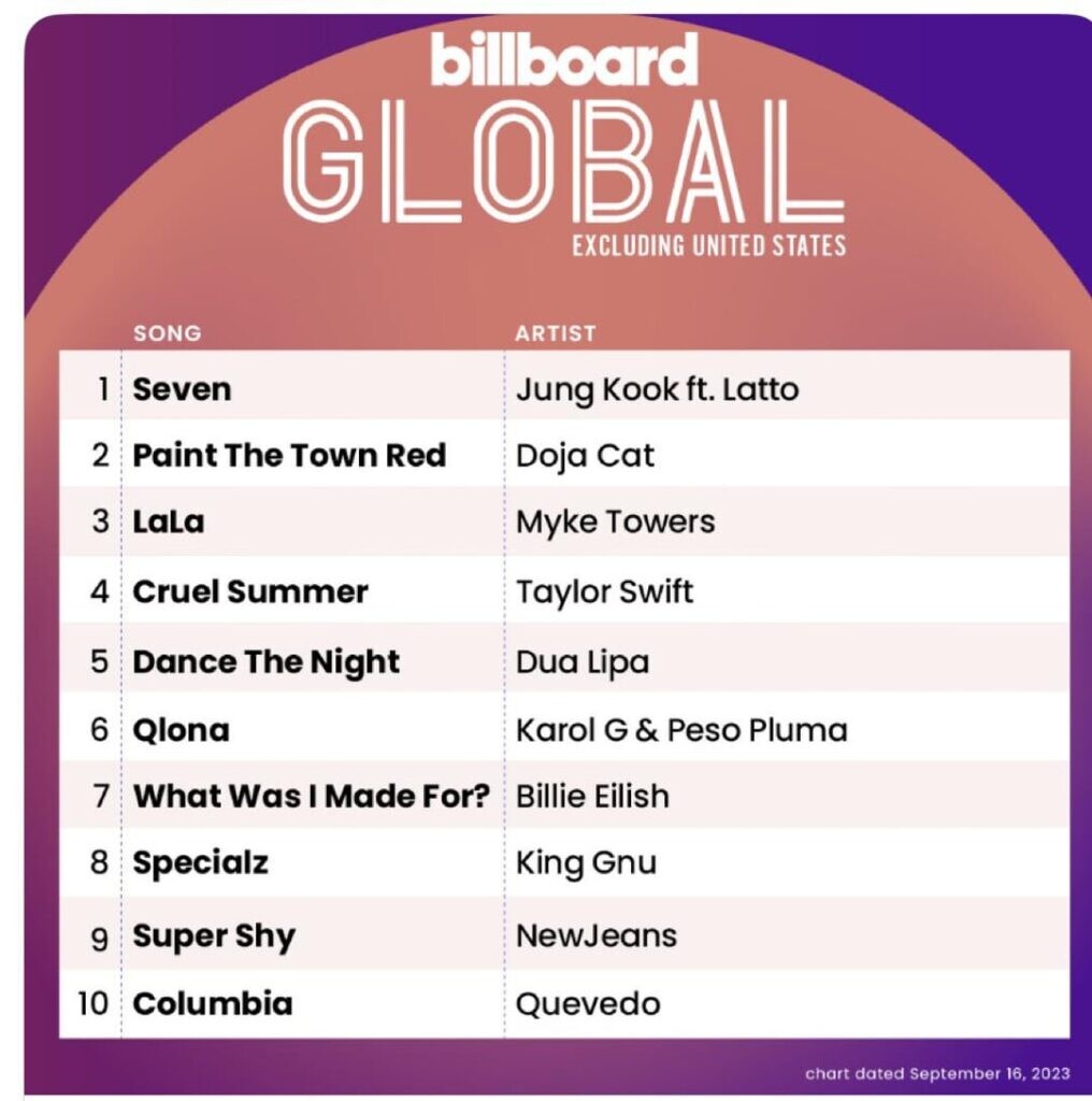 https://www.ptkorea.com/142180/ Jungkook’s “Seven” feat. Latto remains at #1 on Billboard Global Excl. US Charts and #2 on Billboard’s Global 200 – 120823 #ARMY #BangtanBoys #BTS #BTSARMY #防弾少年団 #防彈少年團 #방탄소년단