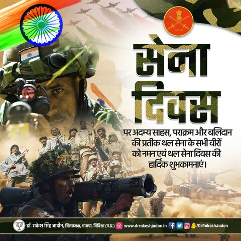 #ArmyDay पर अदम्य साहस, पराक्रम और बलिदान की प्रतीक थल सेना के सभी वीरों को नमन एवं थल सेना दिवस की हार्दिक शुभकामनाएं।