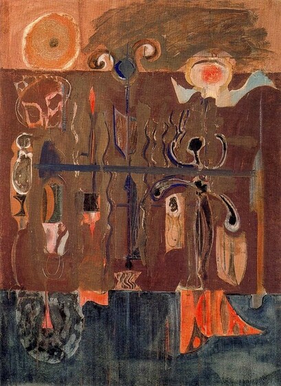 Just to be clear, this Rothko doesn't appear to be on @artHaus.social yet. It's one I captured on "the site that shall not be named". I like that this is like the missing link showing Rothko's migration from his abstract expressionism of the 1930's to his more famous colorfield work of 1950+