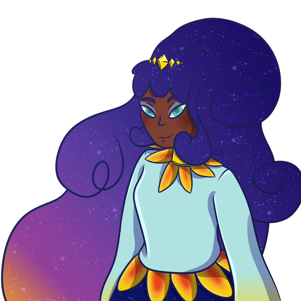 I really really love the excuse to do stars especially on hair and such. And sunrises are also super fun so I just had to draw her?? Her hair is so poofy I love it.